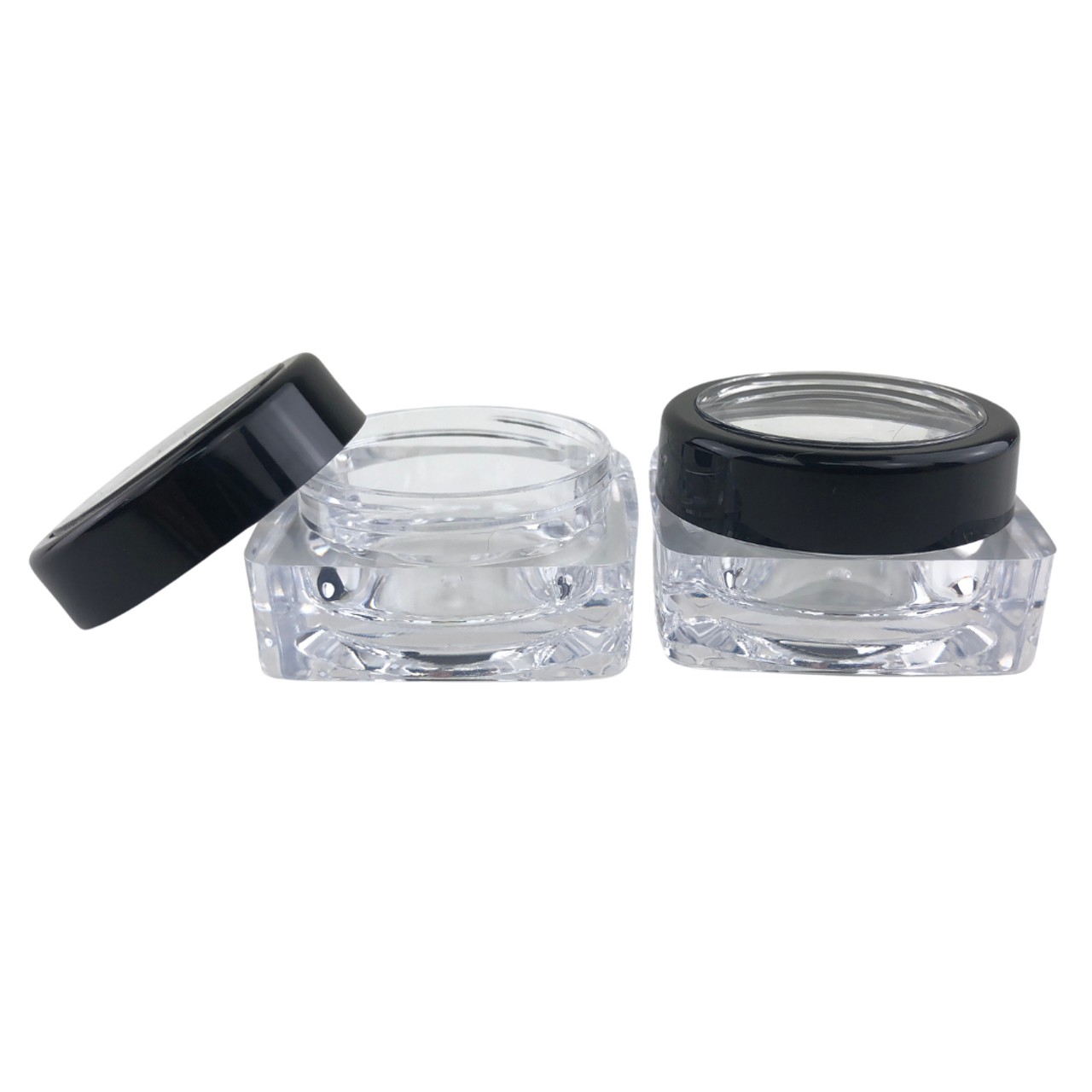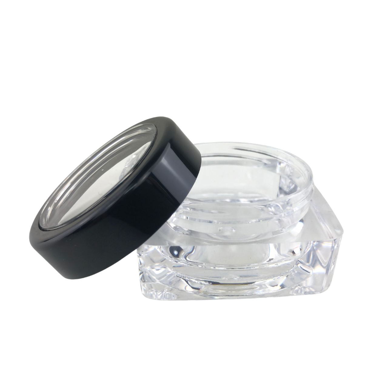 Cosmetic Jars Thick Wall Square Beauty Containers 10 Gram (Black Trim Acrylic Window Cap) • 3189