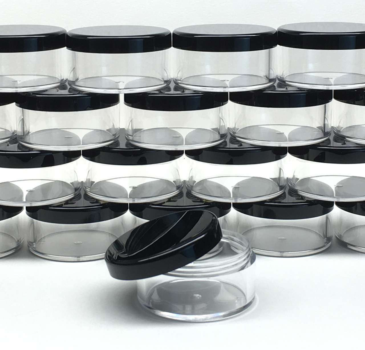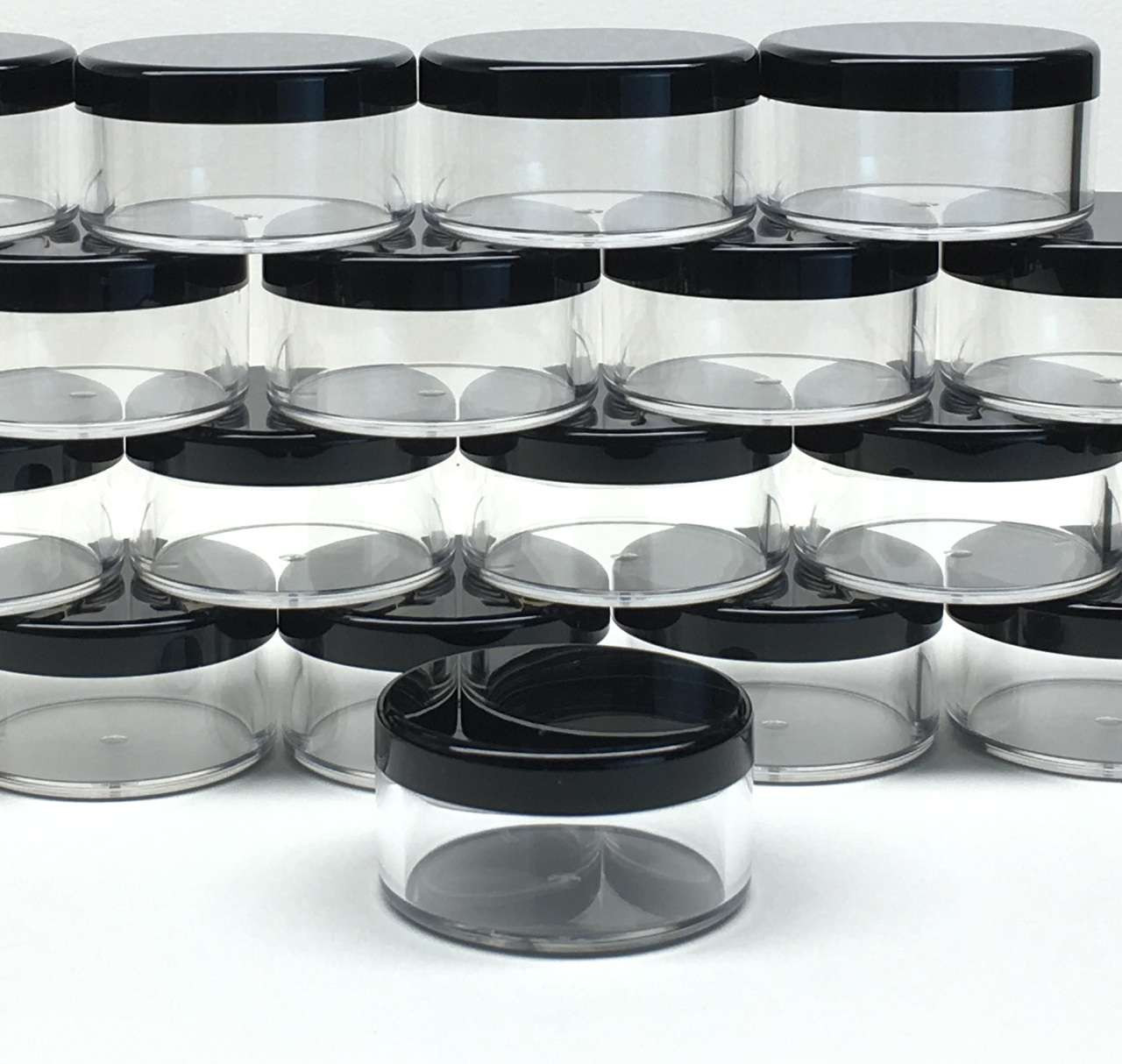 Cosmetic Jars Plastic Beauty Containers - 30 Gram (Black / Clear Lid)