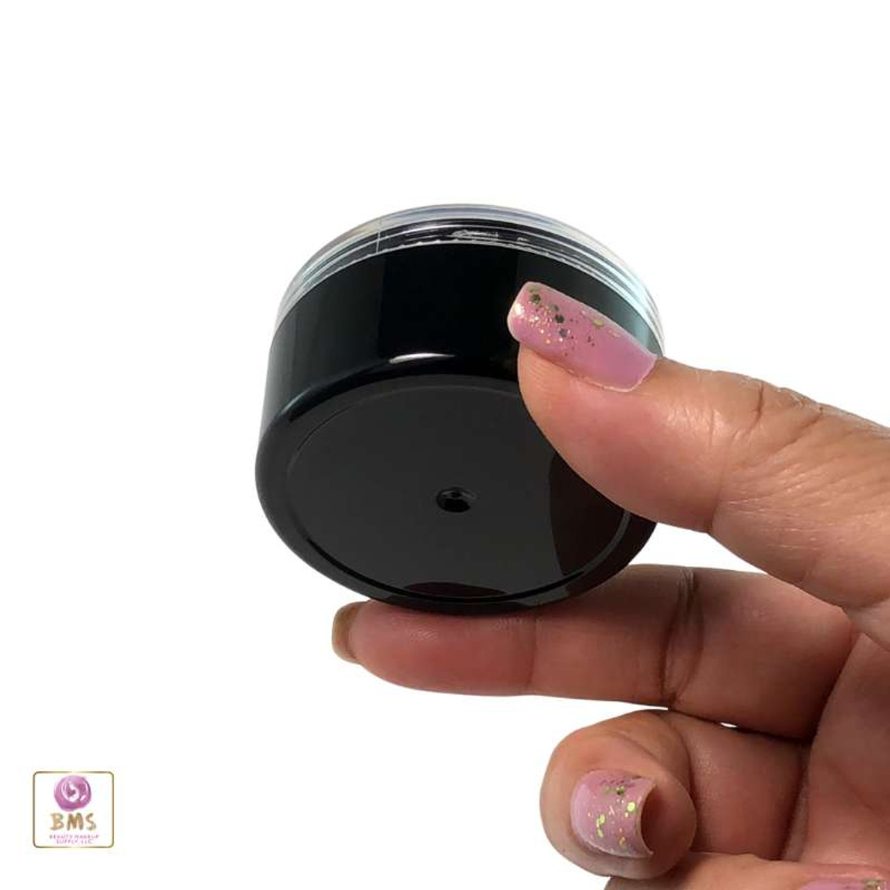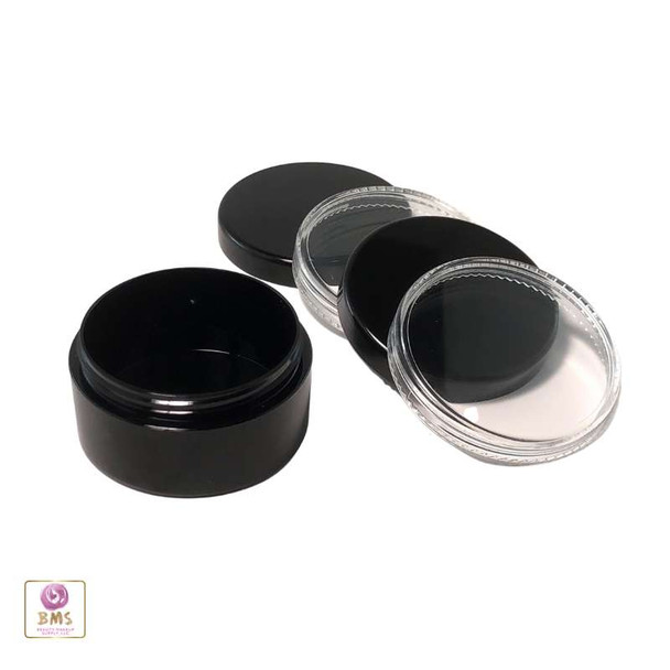 Cosmetic Sifter Jars Plastic Black Beauty Containers with Lids - 30 Gram (Black / Clear Lid)