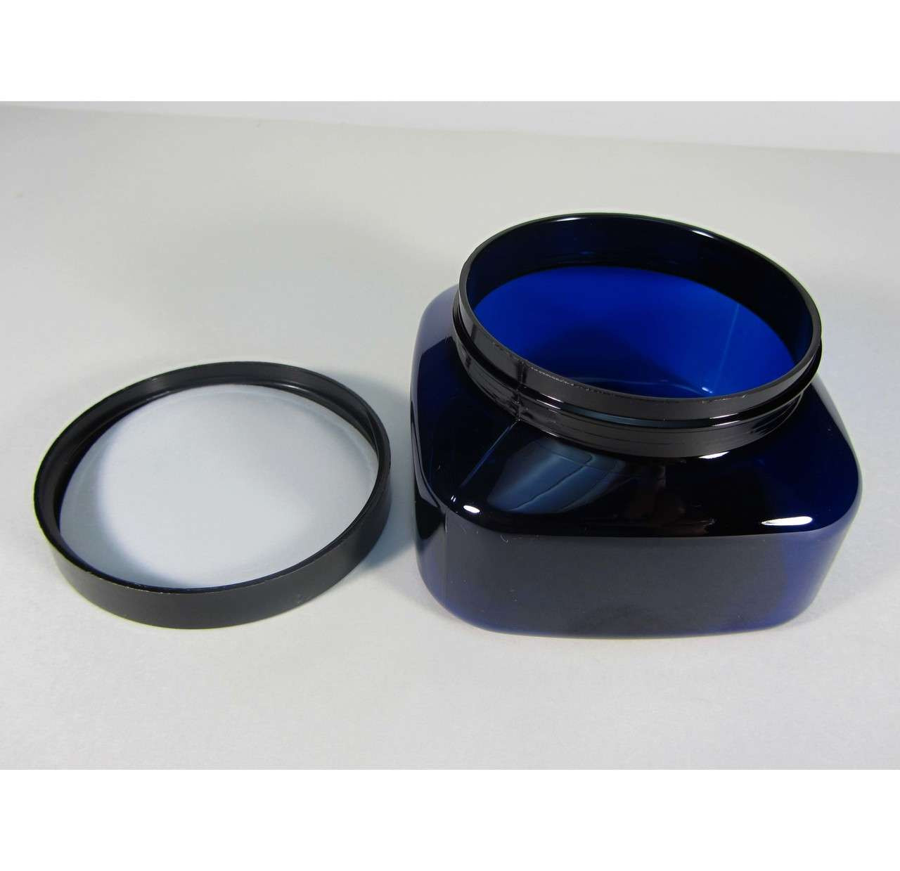 Cosmetic Jars Plastic Square PET Blue Beauty Containers 8 oz. (Black Cap w/ Liner) • 9308