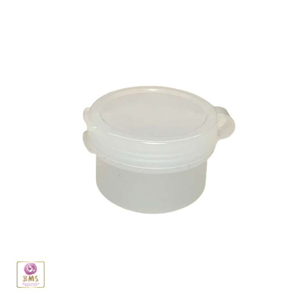 Multi-purpose plastic hinged jar suitable for variety of beauty and craft products. The jar cap is hinged to the jar base and snaps on.
