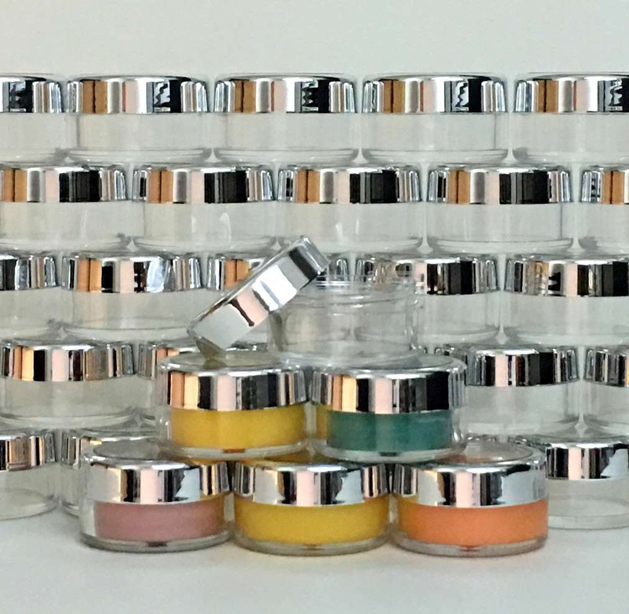 Cosmetic Jars - 10 Gram (Gold Trim / Silver Trim Acrylic Window Caps) • 3012 / 3011