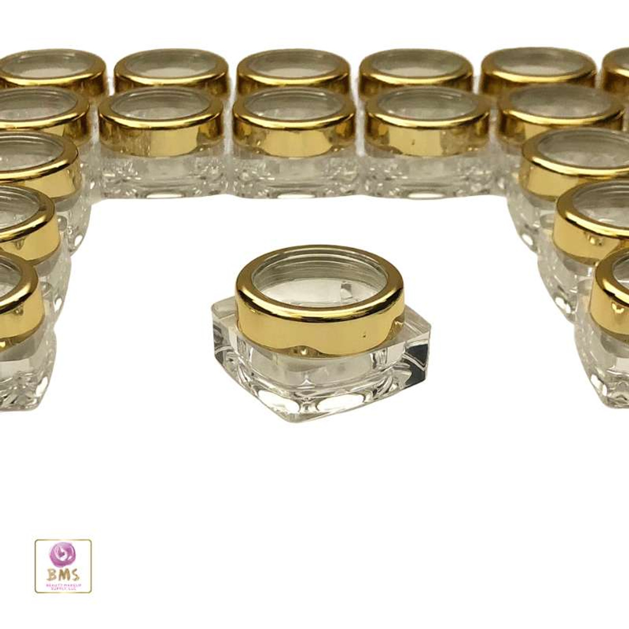 Cosmetic Jars Thick Wall Square Beauty Containers - 10 Ml (Gold Trim / Silver Trim) • 3082 / 3081