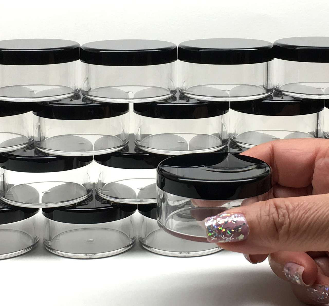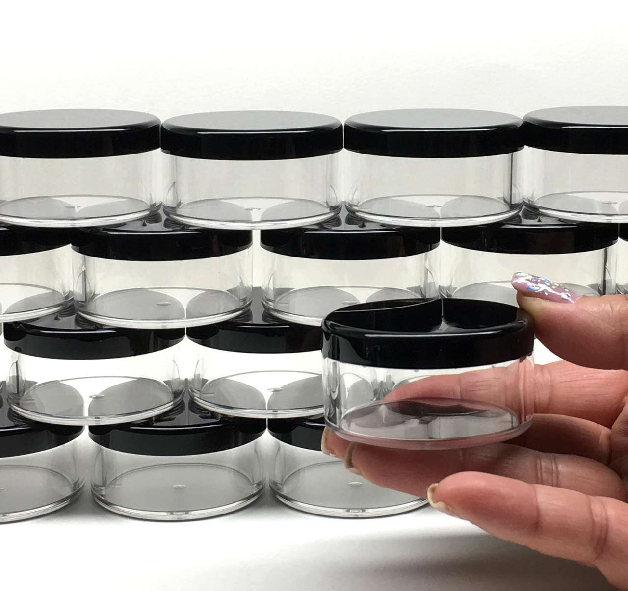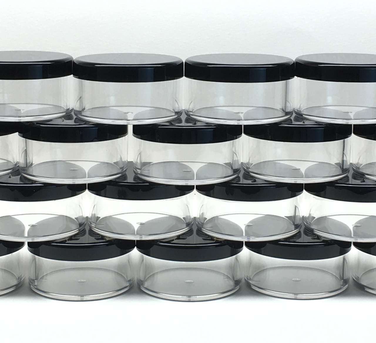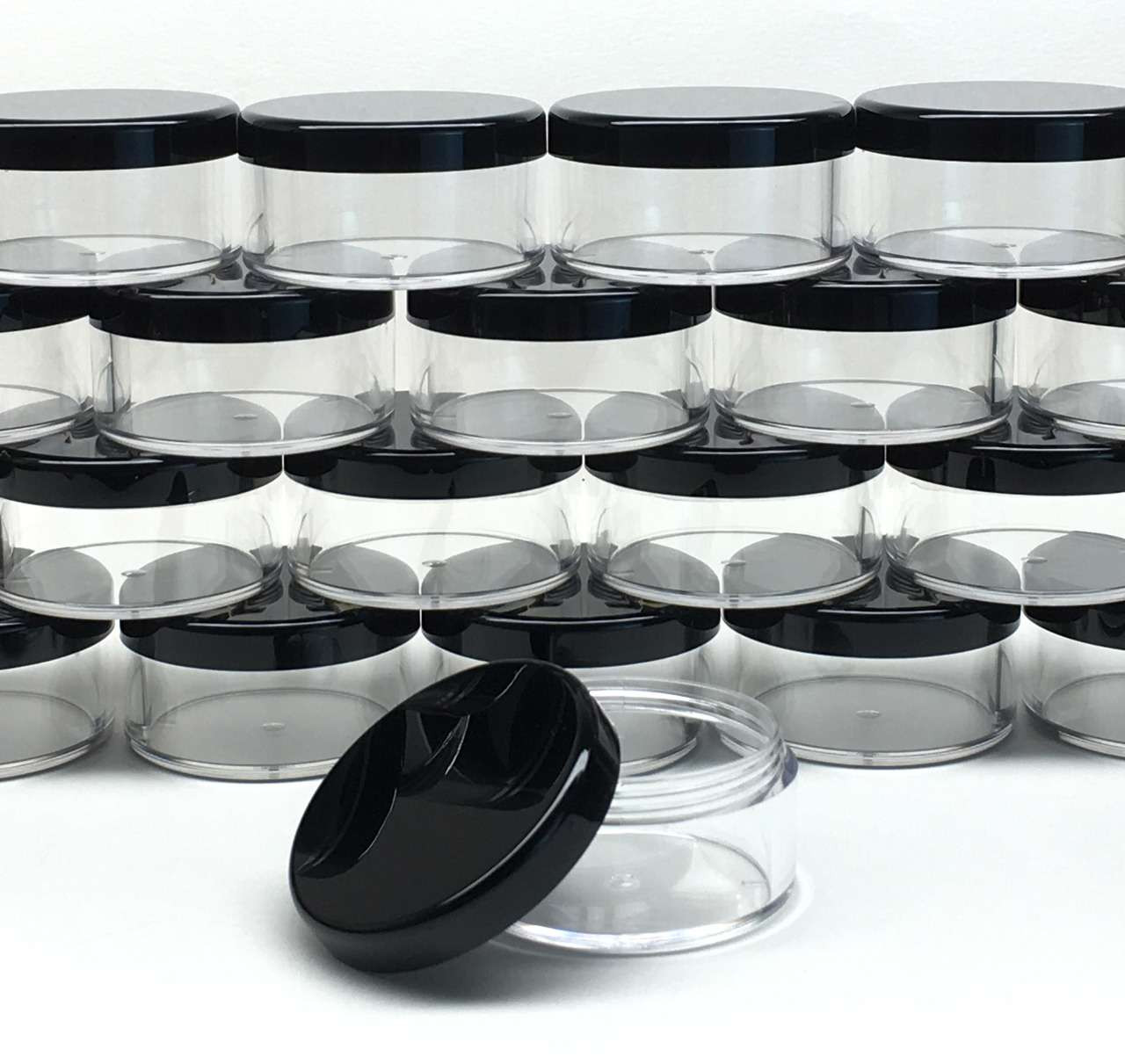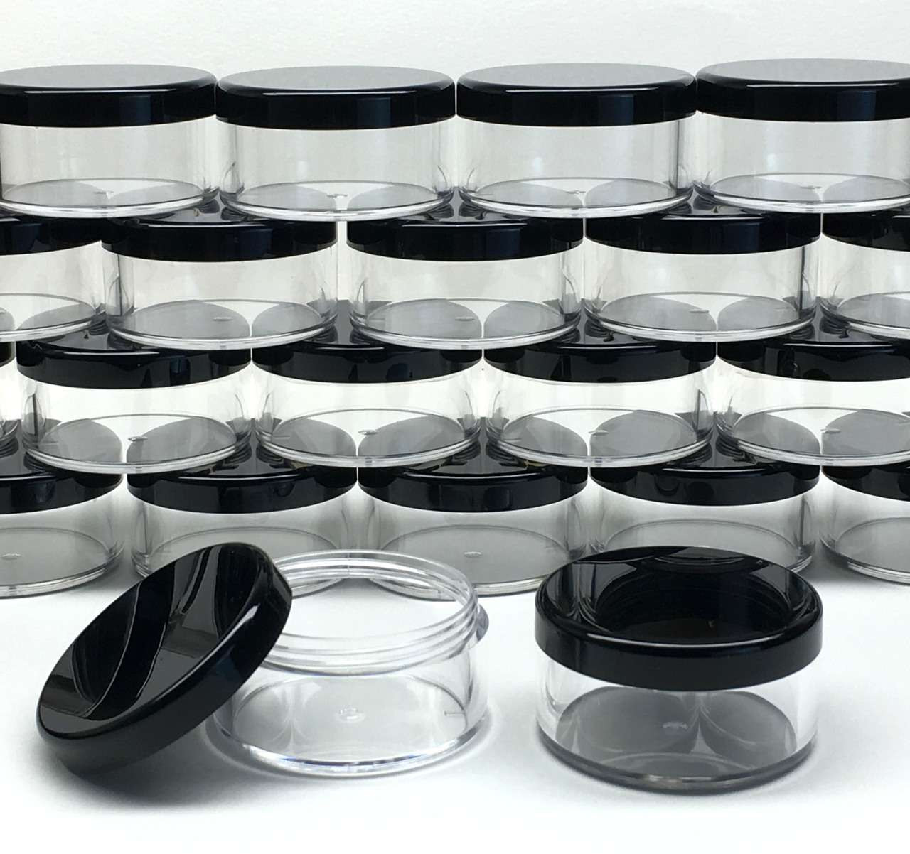 Cosmetic Jars Plastic Beauty Containers - 30 Gram (Black / Clear Lid)