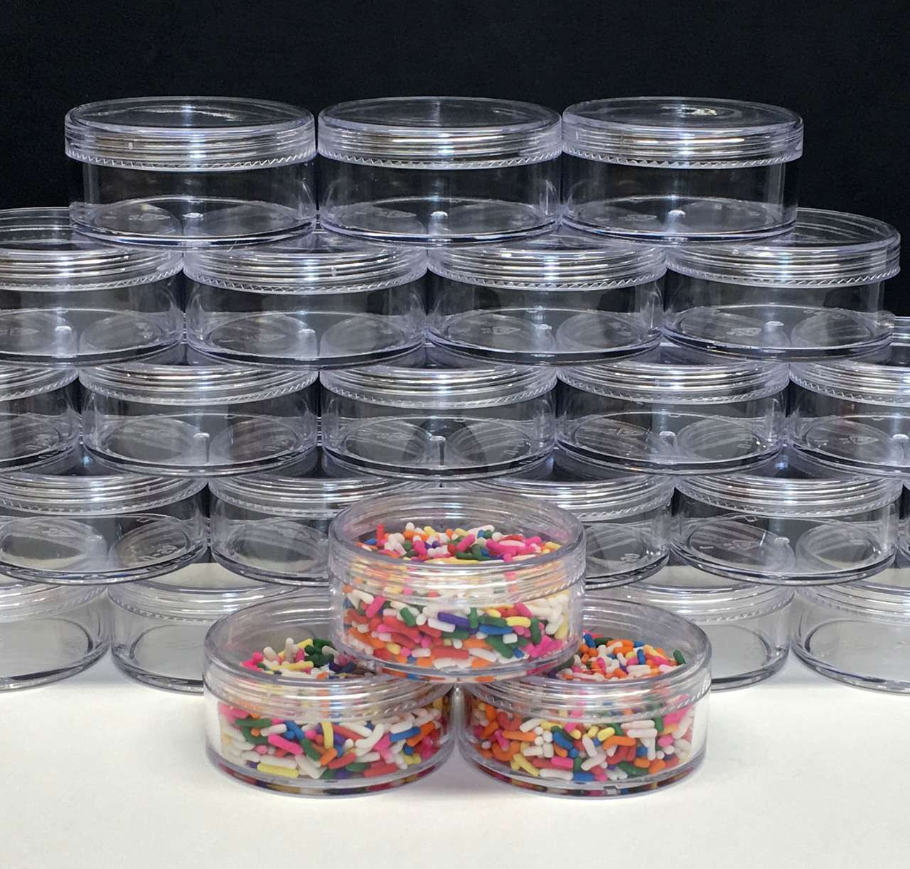 Mineral makeup and personal care jar container with clear lids ideal for face and body products. Adding a jar sifters to evenly dispense powder products from the jar. In addition, these versatile clear plastic jars can also be used for storing beads, jewelry findings, seeds, paper clips, hair clips and so much more. Be sure to utilize the trial lot to properly test for fitness prior to production.