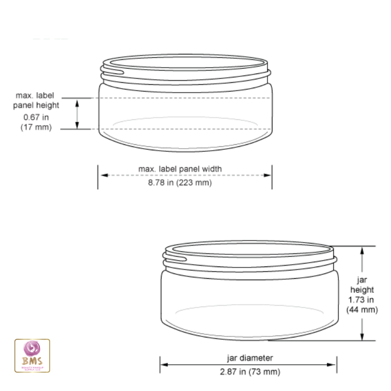 Straight edge clear plastic beauty containers paired with a white or black cap. Economical and professional beauty packaging for your project.