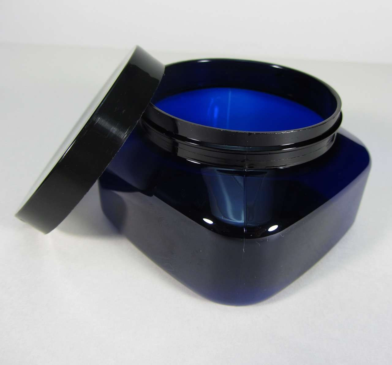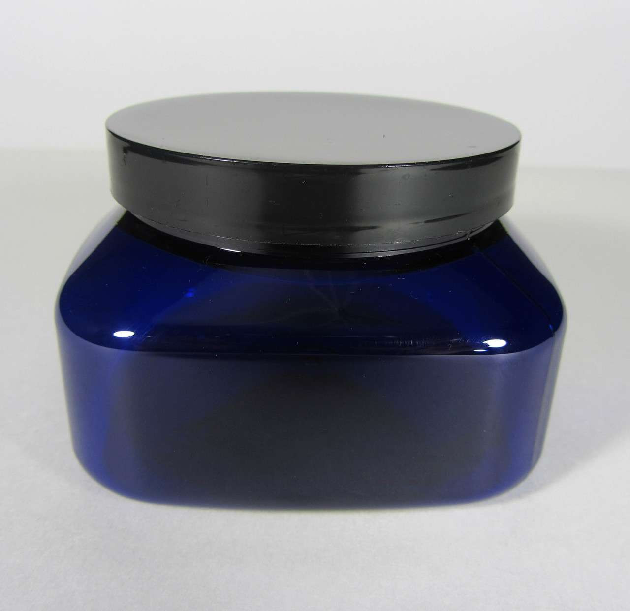 Cosmetic Jars Plastic Square PET Blue Beauty Containers 8 oz. (Black Cap w/ Liner) • 9308