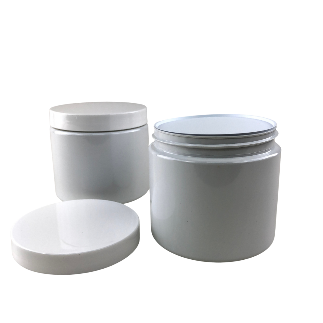 PCR PET Plastic Jars Straight Sided Cosmetic Beauty Containers with Sealing Disc - 16 oz. (White Cap) • 9382