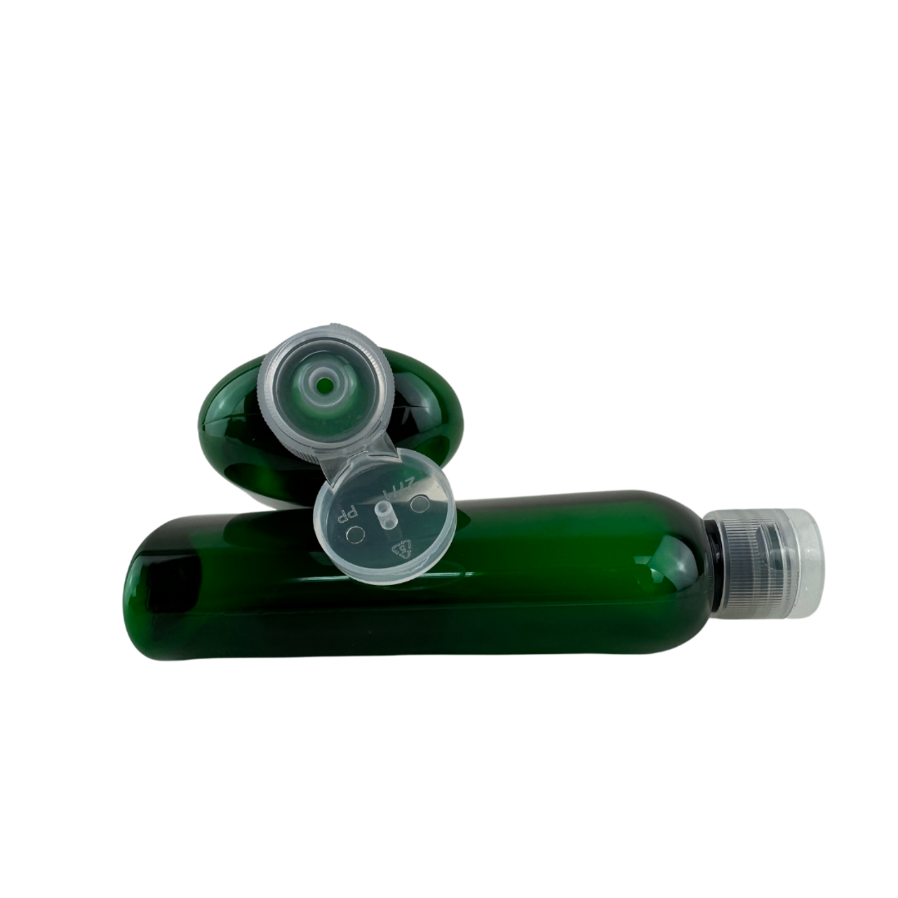 Plastic Bottles PET Cosmo Oval Bottles Clear Snap Close Flip Top 4 oz. (Green) • 9734FC