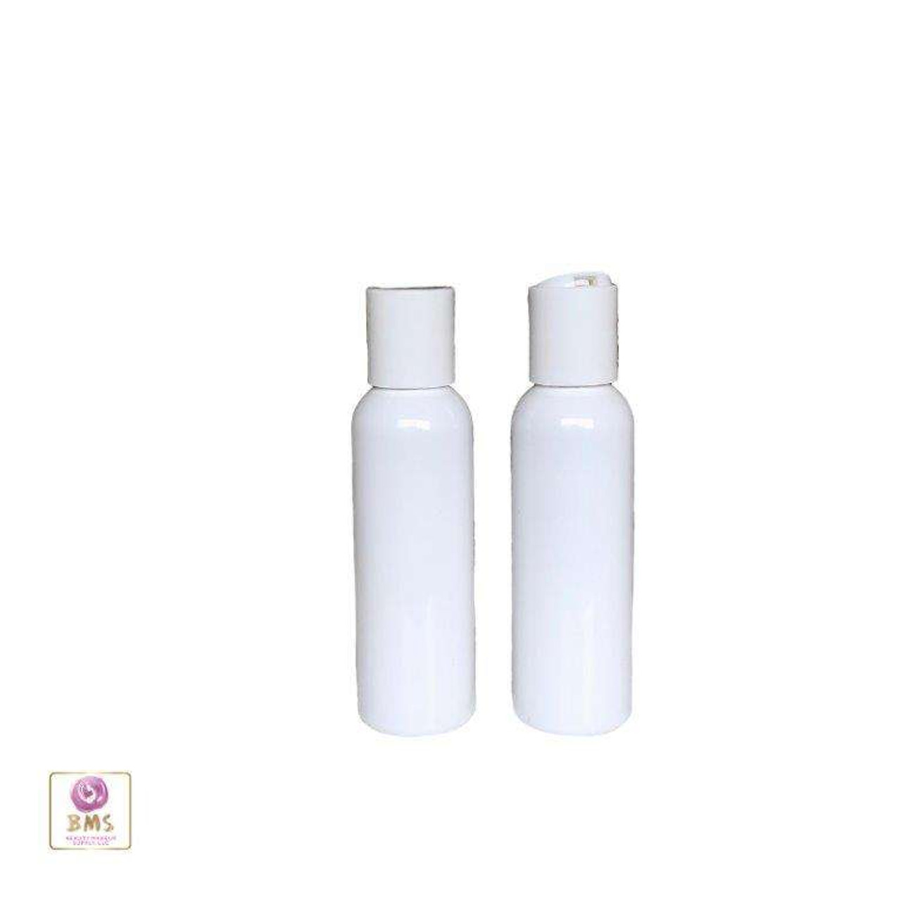 White color plastic 2 oz. bottles can be used in a variety of applications. Each unit consists of a bottle and a disc top cap.
