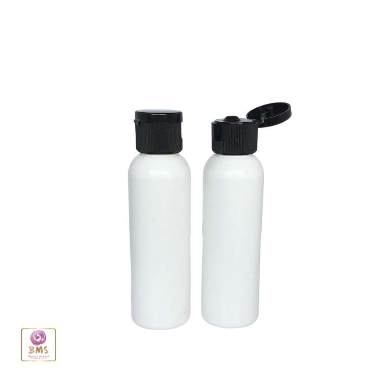 White PET plastic 2 oz. bottles can be used in a variety of applications. Each unit consists of a bottle and a flip top cap.