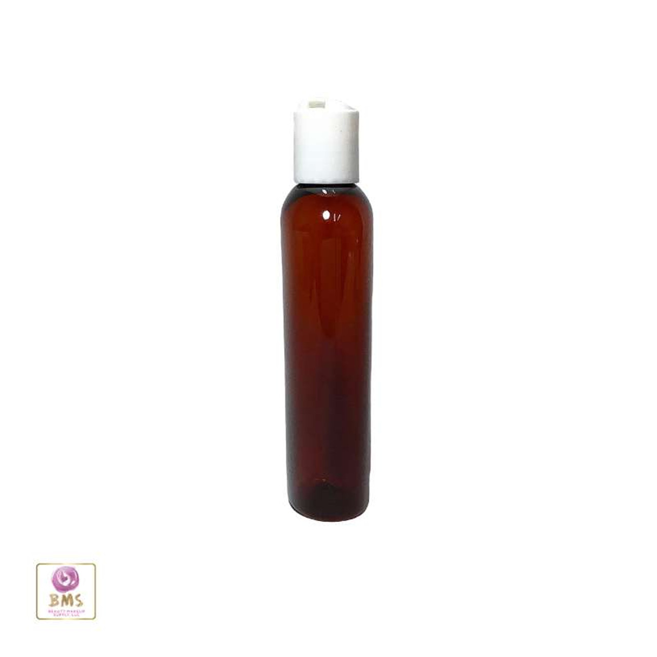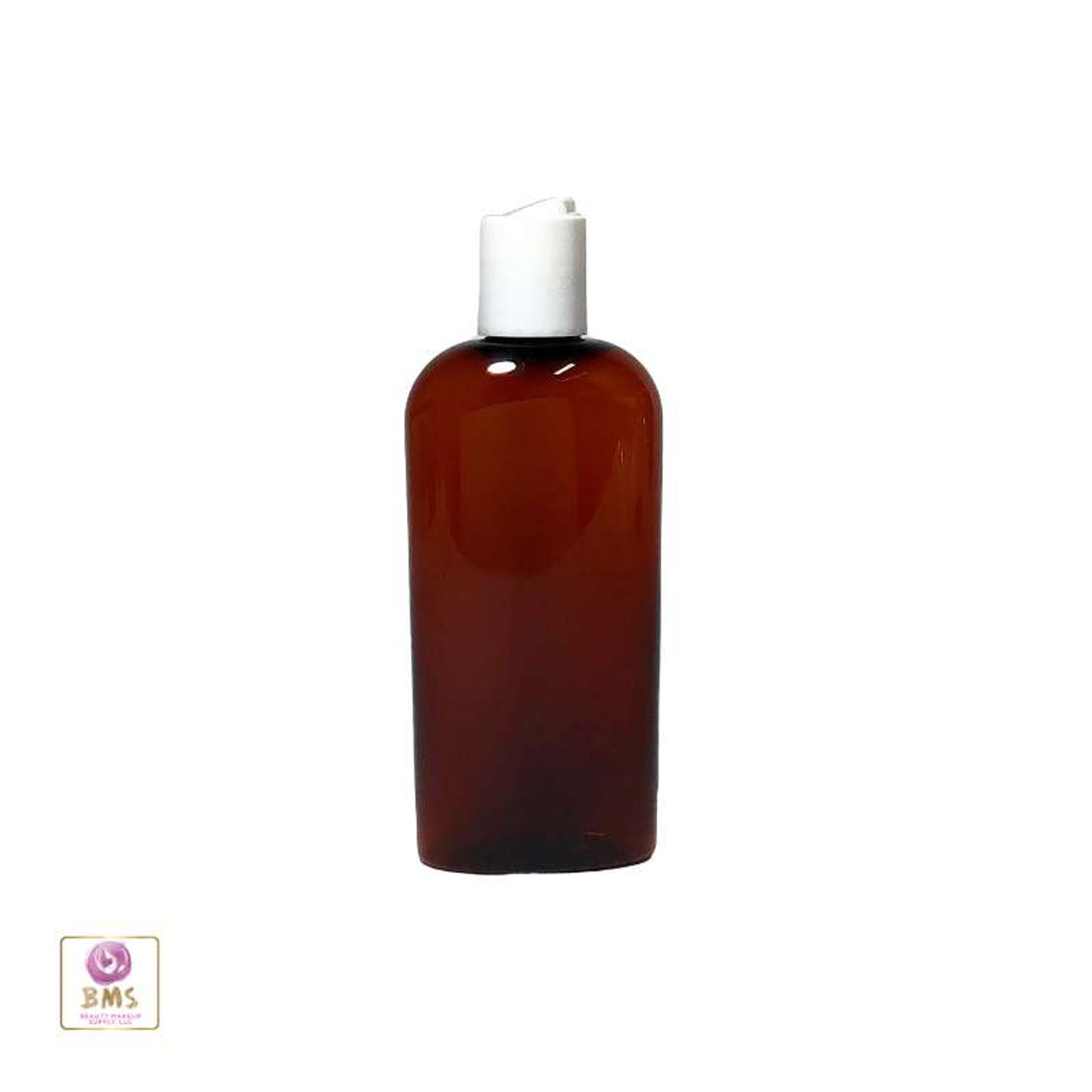Plastic Bottles PET Cosmo Oval Liquid Bottles White Disc Top 4 oz. (Amber) • 9754DW