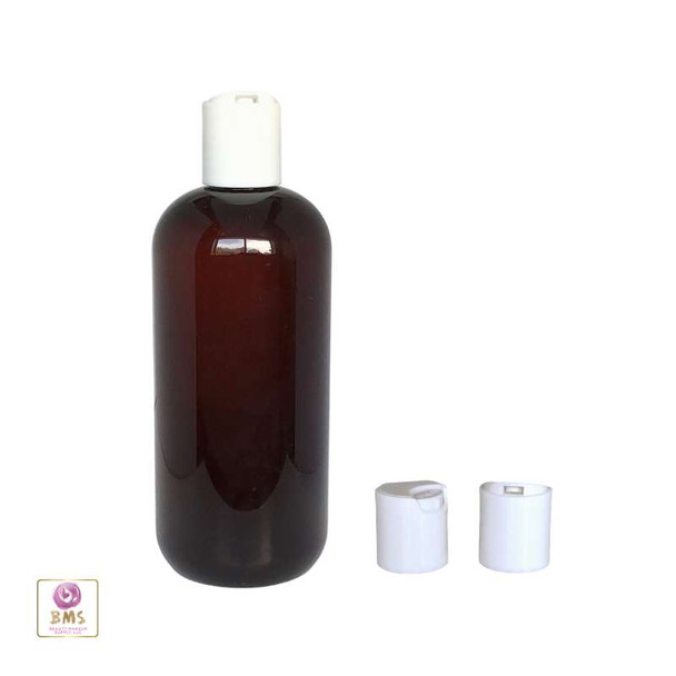 Amber plastic 12 oz. PET bottles can be used in a variety of applications. They are great containers for pharmaceutical, cosmetics, chemical, laboratories, and industrial products. Each unit consists of an amber bottle and a white disc top.