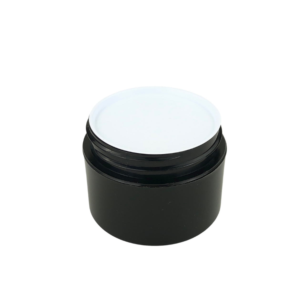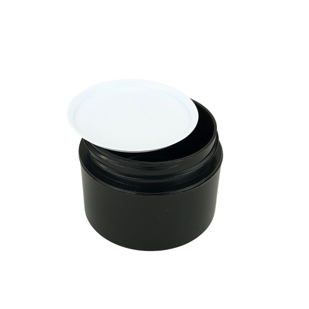 A white plastic cosmetic disc that creates a functional barrier and luxury appeal; it also retards the evaporation of ingredients.