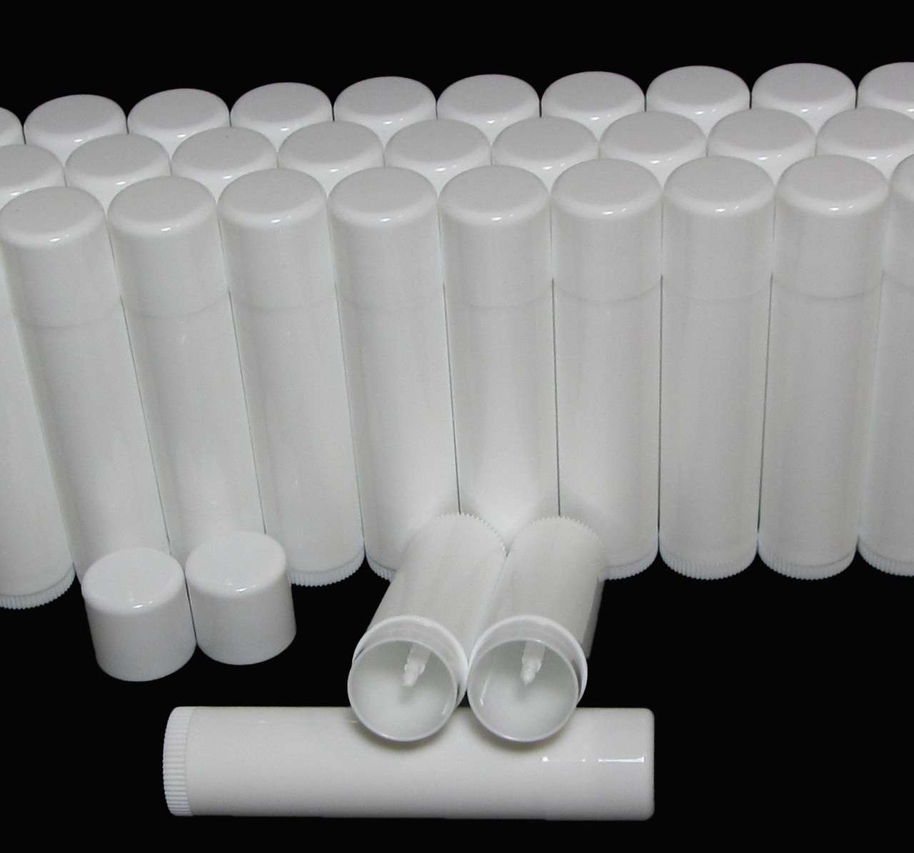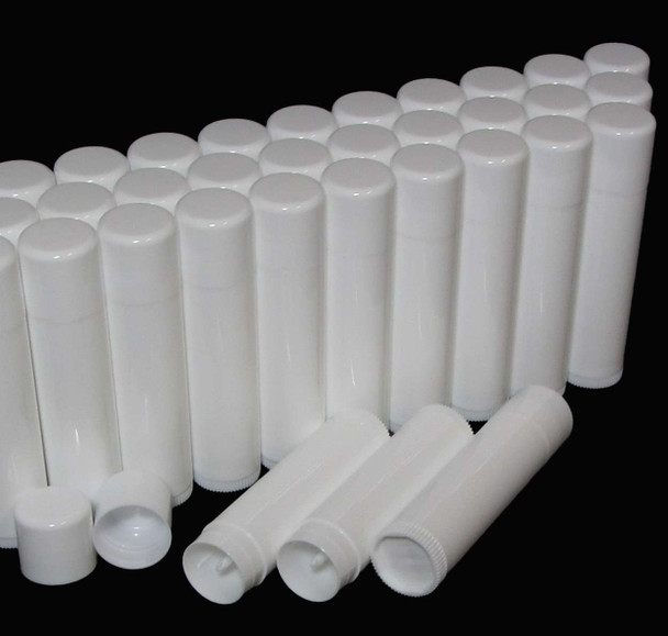 Lip Balm Tubes Plastic Beauty Containers - 0.15 oz. White Rounded Edge Caps • 9160