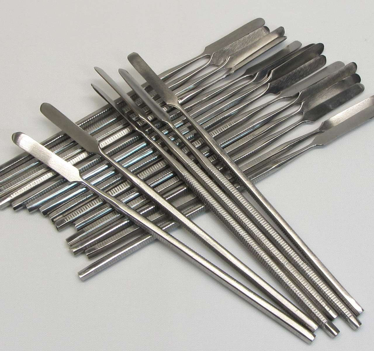 This is a stainless steel metal spatula measures approximately 6.25 inch in length with a flat spatula head of 0.2 inch. This metal spatula can be used for many different applications in mixing, scooping or scraping off products.