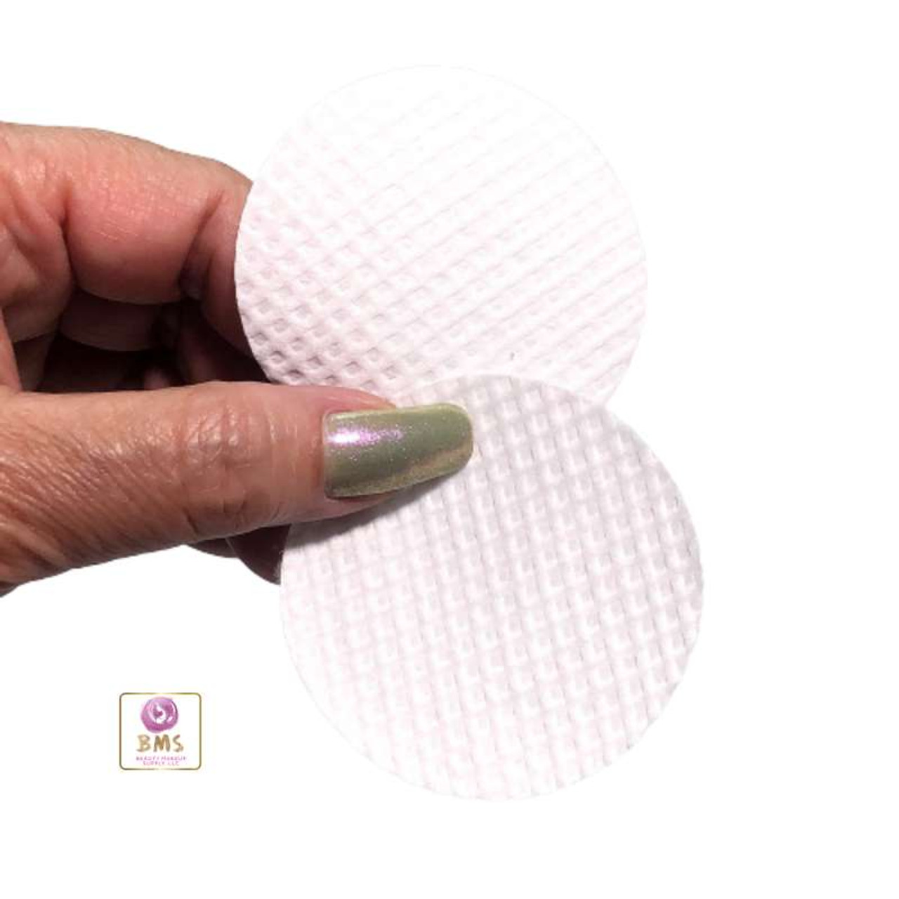 These are round waffle exfoliating pads with textured surfaces ideal for gentle skin exfoliation. It is commonly used with face toner and other skincare products. These round pads can be placed inside a 2 oz., 4 oz. or 8 oz. beauty containers with your desired liquid products and packaged for retail.