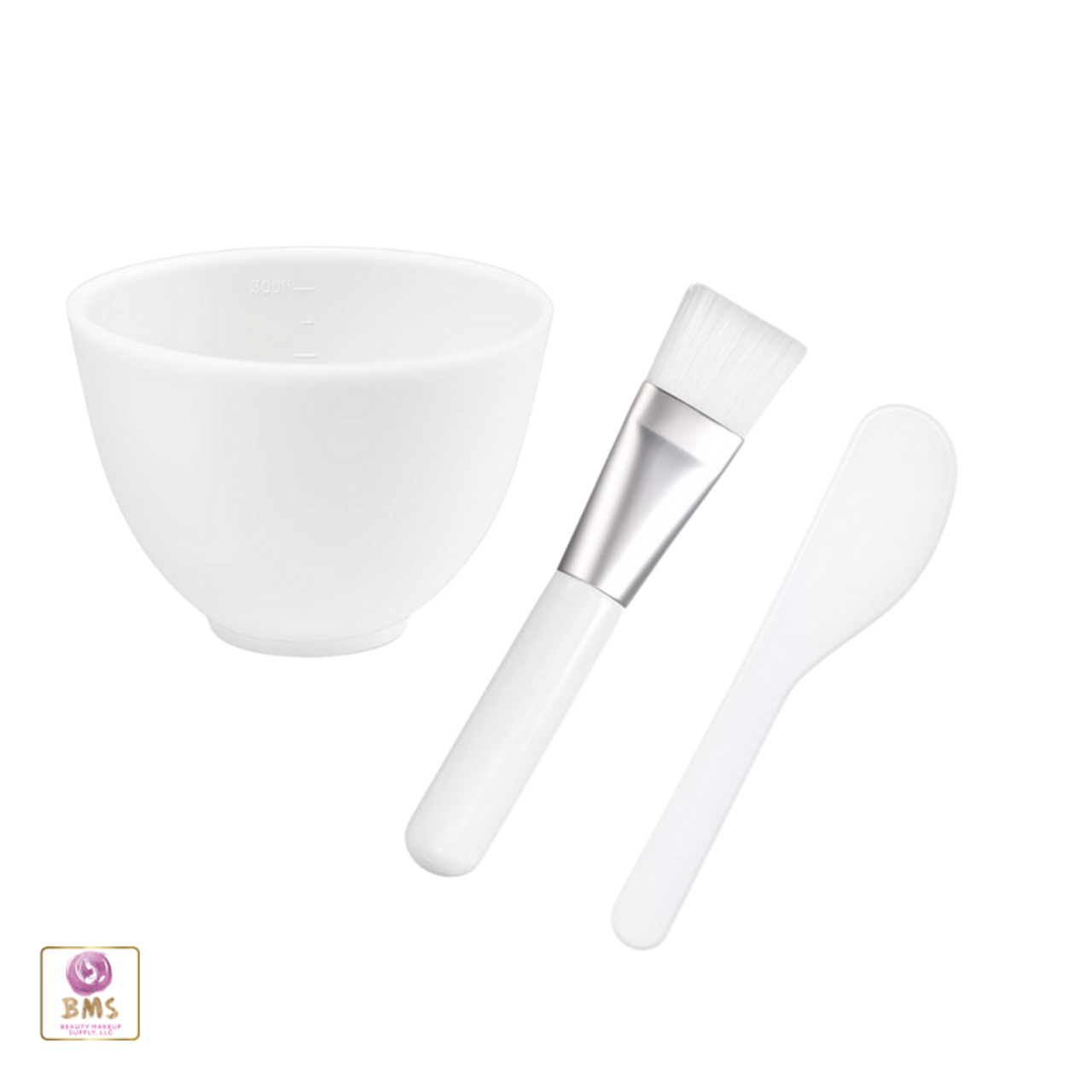 A 3-pc set of flexible mask bowl, mask brush and a large head spatula.