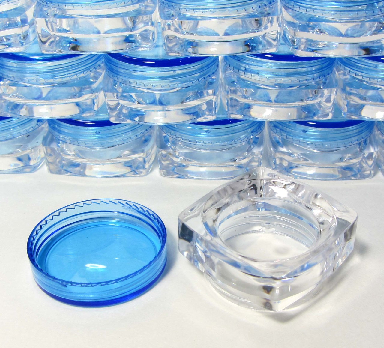 Mini Cosmetic Sample Jars – Clear Square Base with Colorful Caps