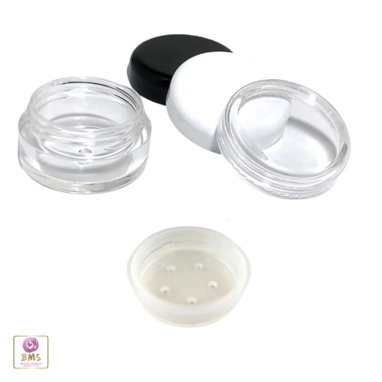 Cosmetic Sifter Jars Empty Plastic Beauty Containers - 5 Gram (Clear / White / Black Lids)