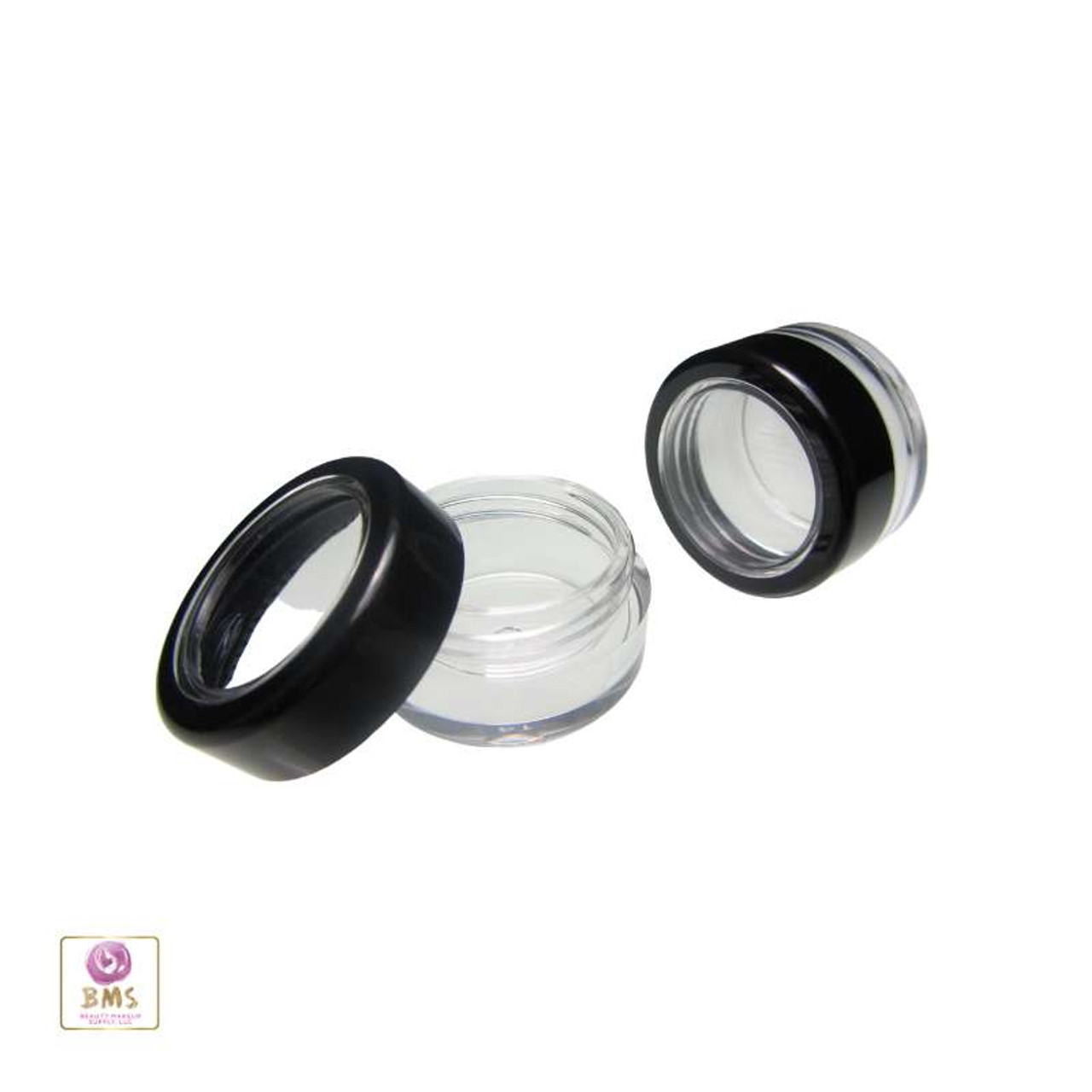 Black Trim Cosmetic Jars Plastic Beauty Containers - 5 Gram (Acrylic Window Caps) • 5015