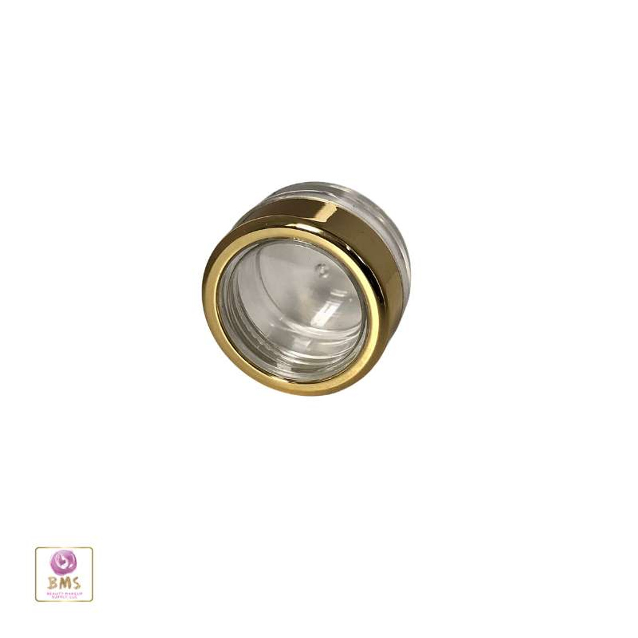 Cosmetic Jars Plastic Beauty Containers - 5 Gram (Gold Trim Acrylic Window Caps) • 3050