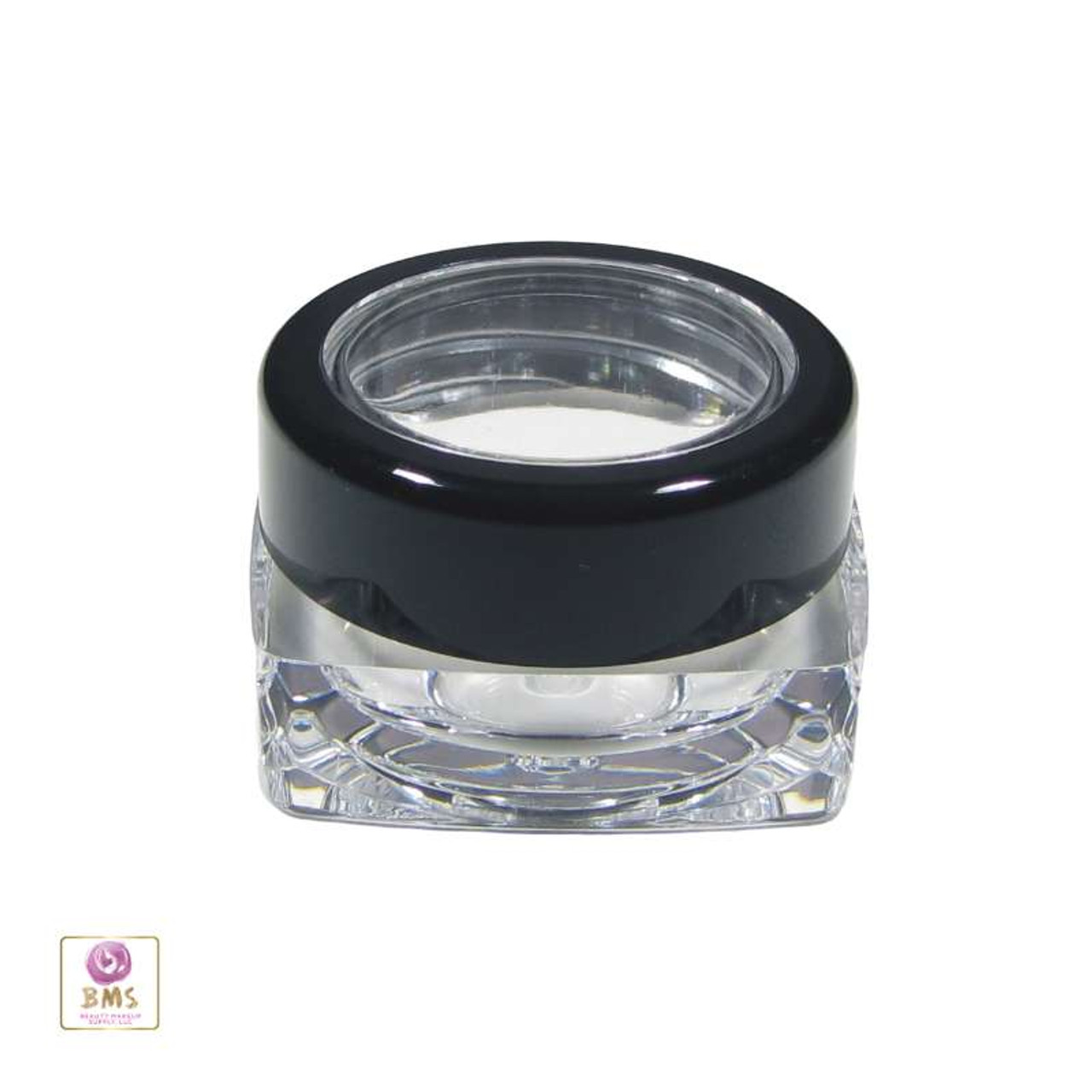 Cosmetic Jars Thick Wall Square Beauty Containers - 5 Ml (Black Trim Acrylic Window Lid) • 3039