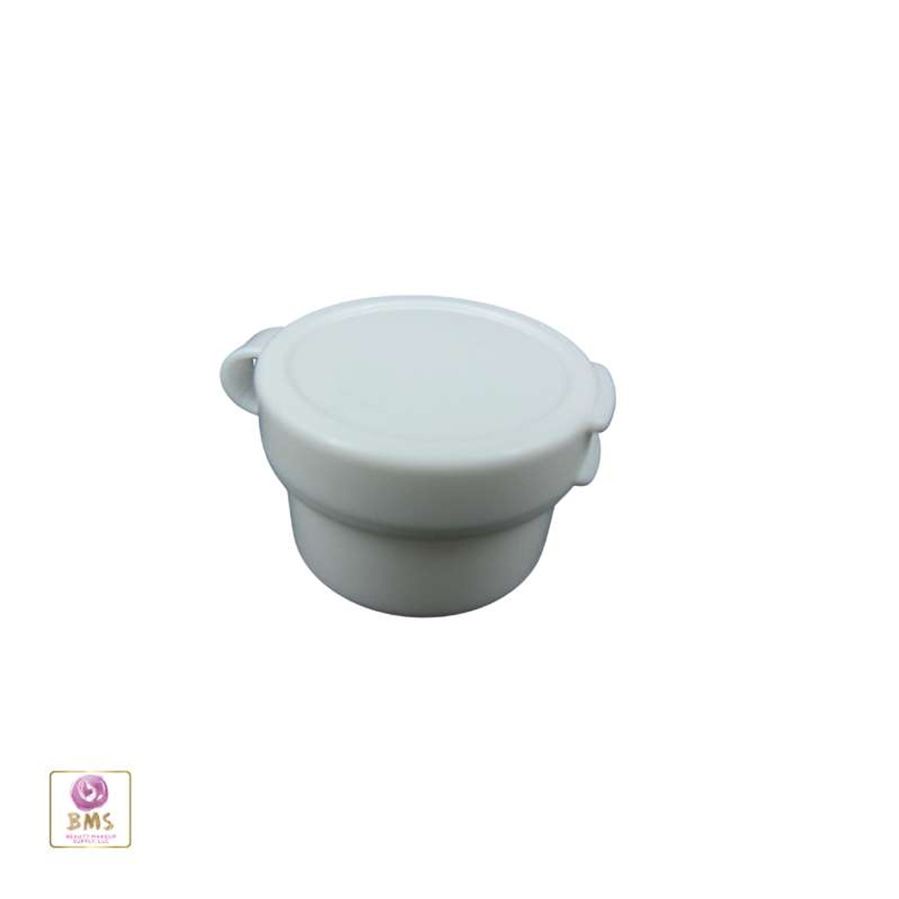 Multi-purpose plastic hinged jar suitable for variety of beauty and craft products. The jar cap is hinged to the jar base and snaps on.